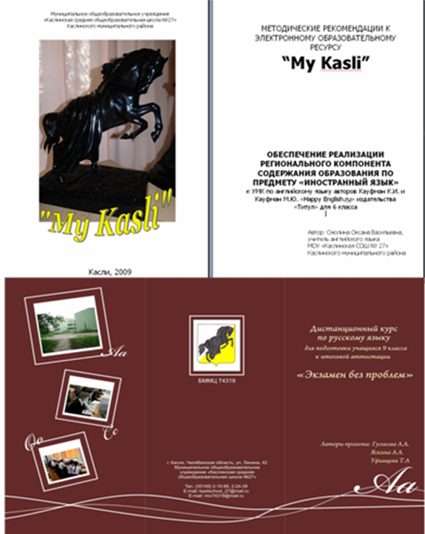 Инновационный проект "My Kasli" (автор проекта: Смолина О.В.) Инновационный проект "разработка дистанционного курса "Экзамен без проблем" для подготовки учащихся к итоговой аттестации по русскому языку" (автор проекта: Гуськова А.А.) Инновационный проект "Разработка элективного курса "Культура устной и письменной речи" (Мельникова А.П.)